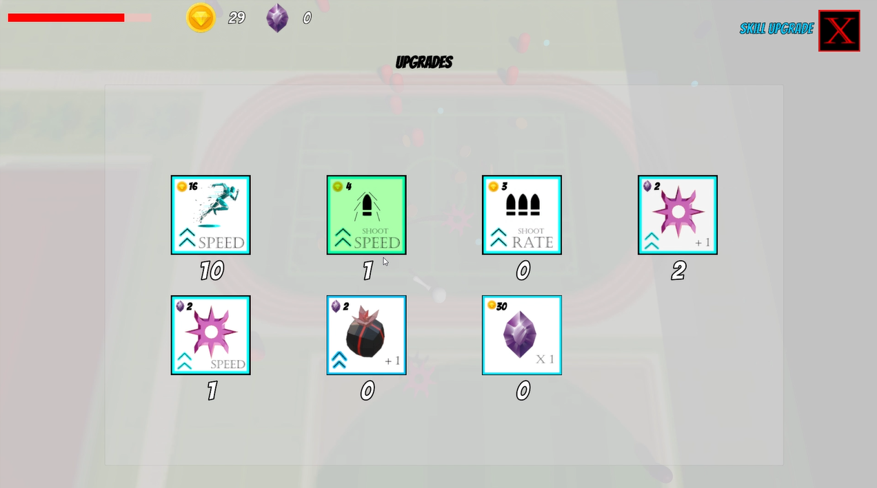 Use coins and crystals to purchase upgrades.